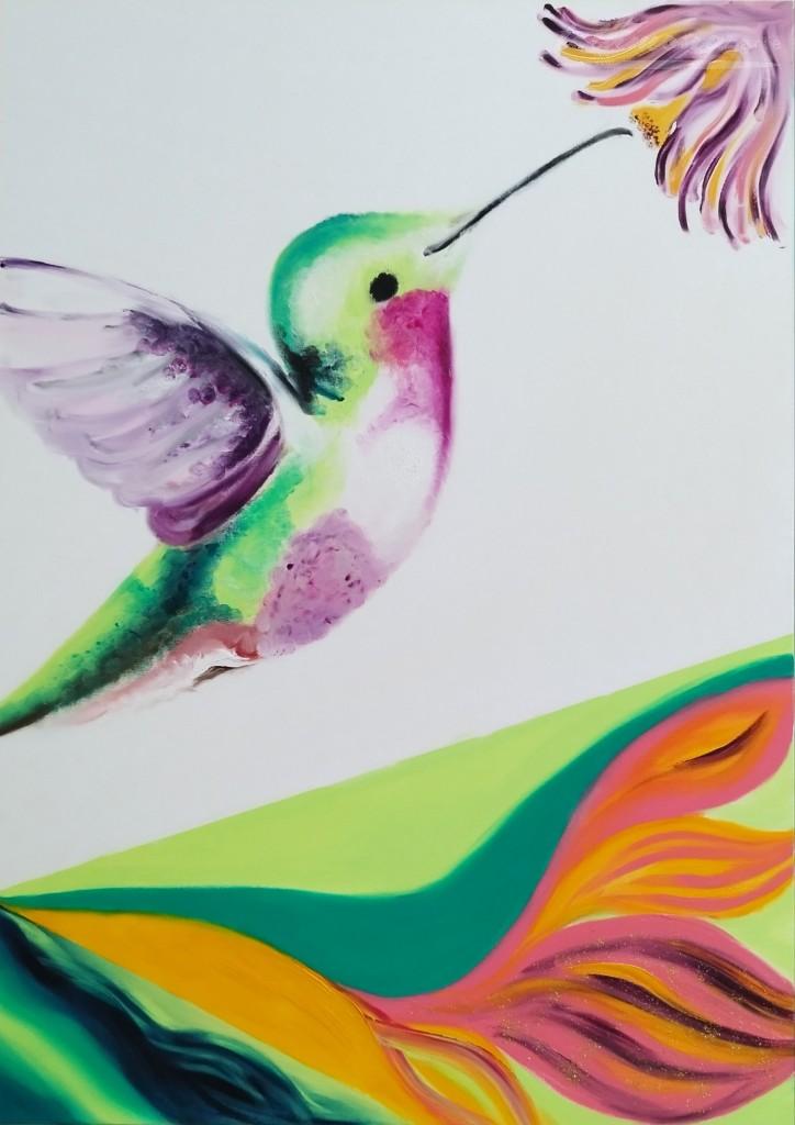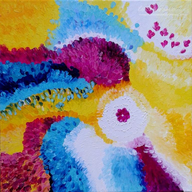 A tárlaton ujjal festett olajfestményeimet és folyatott akril alkotásaimat láthatjátok, amelyek most együtt, egy térben mesélnek arról az útról, amelyet a festéken és a színeken keresztül bejártam.