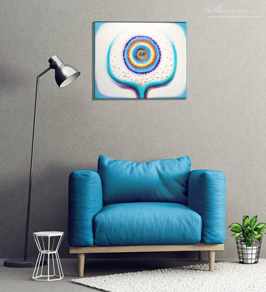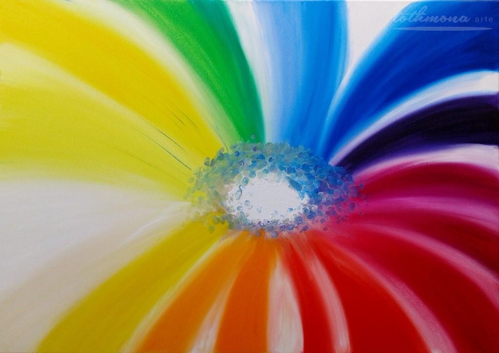 Colors are my passion, my work. I love to paint, to create new things.Harmony and beauty are the most important core values of my work. I want to show you these values through my pictures soaked with playfulness and love.I paint my nonfigurative oil paintings only with my fingers, I don’t use a brush. Thus, I am in the most direct connection with the artwork to be born. For choosing colors and forming shapes I listen to my inner guidance.